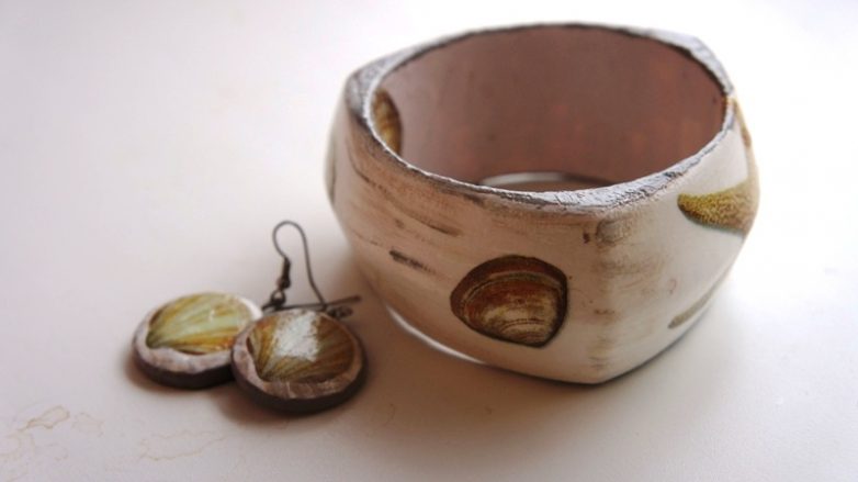 Браслет и серьги «Ракушки» в технике «декупаж»