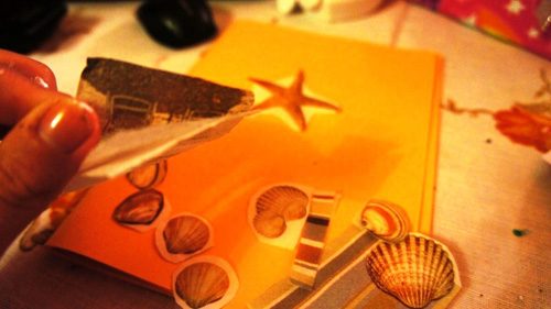 Берем самую обыкновенную салфетку, на которой есть изображения ракушек. Вырезаем ракушки маленькими ножницами. Если на салфетке они на белом фоне, можно вырезать, оставляя фон. Если ракушка не на белом фоне, нужно вырезать ее, не оставляя фона.