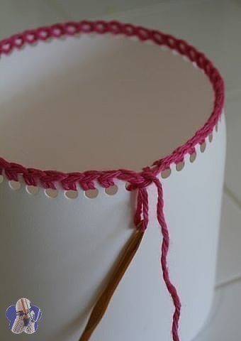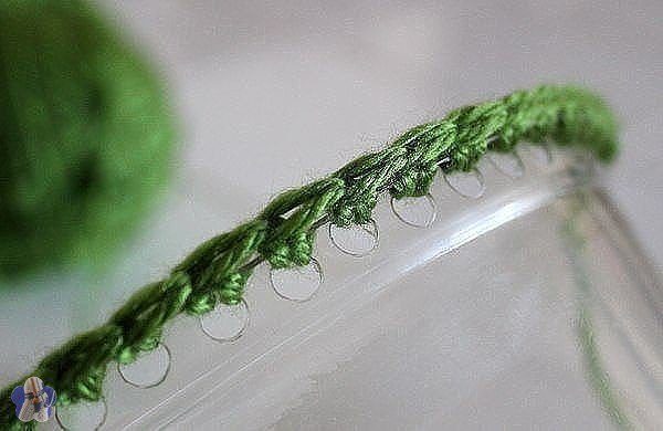 Для начала потребуется отрезать верхнюю часть бутылки и сделать по ободку пластика дырочки для будущего вязания при помощи дырокола.