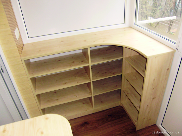 Современную мебель при необходимости можно встроить в небольшие по площади балконы или лоджии, которые имеются в домах типовой застройки.