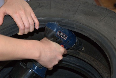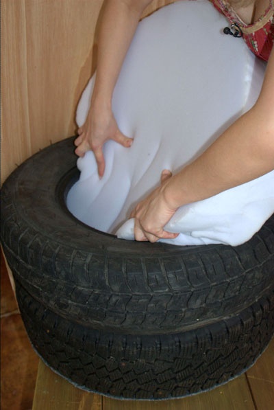 5. Теперь необходимо положить толстый поролон в шины. Это потребует некоторых усилий.
