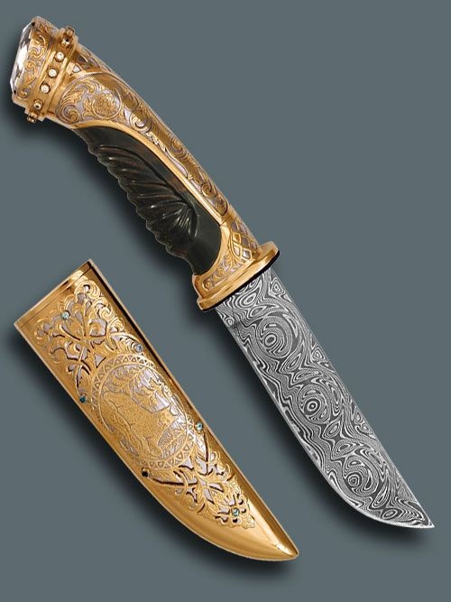 Неосведомленность продавцов оружейных магазинов объясняется просто: авторское художественное оружие — это даже не другой жанр, это параллельный мир материальной культуры, предназначенный исключительно для созерцания. К отполированному лезвию из “дамаска” ни один ценитель не прикоснется пальцами. В то же время эксперты особо ценят и технологическую полноценность клинка, конструктивную правильность ножа в целом, его функциональность, то есть удобен ли он для боя, переворота в руке или разделки туши. Разумеется, только оригинал из когорты олигархов или жлобов станет вспарывать брюхо кабану или потрошить семгу с помощью дамасского кинжала стоимостью $5000—8000. Впрочем, в Московском клубе коллекционеров оружия вспомнили старинную дамасскую саблю, которую незадачливые владельцы принесли на реставрацию после того, как сдуру пытались опробовать ее режущие свойства на арматуре или чем-то подобном. Эксперты не смогли удержаться и не обрадовать варваров: без зазубрин сабля могла стоить не менее $25000.