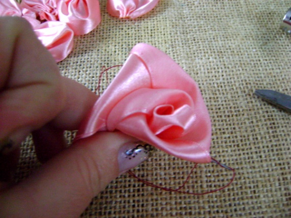 потом просто тянем за ниточку, закрепляем и получаем лепесток
