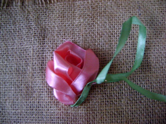 и последние штрихи — зеленая лента. Не бойтесь протыкать бутон, но расправляйте его, чтобы он не становился плоским