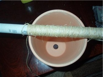 Закрепим ствол в горшке, сделать это можно, залив его гипсом и дождавшись высыхания. Предварительно в ту часть ствола, которая будет закреплена, можно вкрутить пару-тройку саморезов для более надёжной фиксации. Оформление поверхности “грунта”, так же, как и ствола,- вопрос личного вкуса и фантазии, начиная от покраски, заканчивая использованием настоящей берёзовой ветки. Также обратите внимание на отделку горшка, здесь возможны варианты.