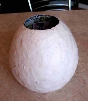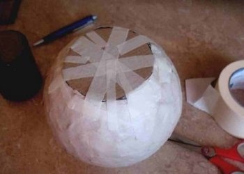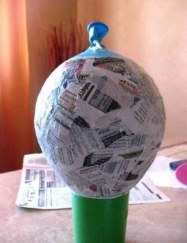 Обклейте шар несколькими слоями бумаги, используя пасту для папье-маше.
