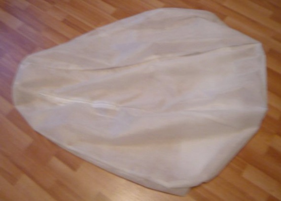 Наполняем внутренний чехол пенополистиролом. Для удобства наполнения можно сделать воронку из бумаги после чего необходимо плотно застегнуть молнию и зафиксировать ее.