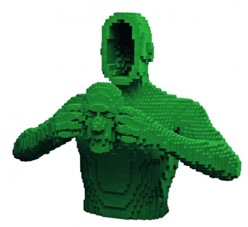 В его коллекции есть охотничий трофей в виде головы медведя, который символизирует либеральное отношение Нью-Йорка к охоте. По словам художника, на такой трофей уходит порядка 4-5 тысяч блоков Лего и 2-3 дня работы. На создание фигур человека уходит по 150 тысяч блоков.