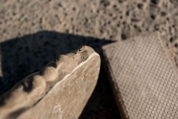 Посредством лезвия или ножика очищаем камень от листа. Здесь надо быть предельно аккуратным.