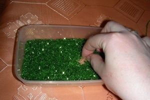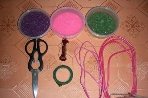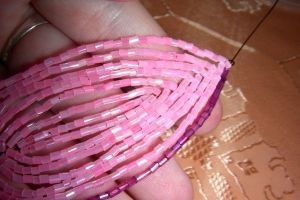 бисер различных цветов (фиолетовый, розовый, зеленый);