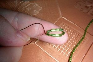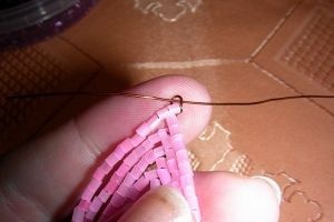 3. На другой конец проволоки нанизываем бисер в таком количестве, чтобы он полностью закрыл оставшийся кончик.