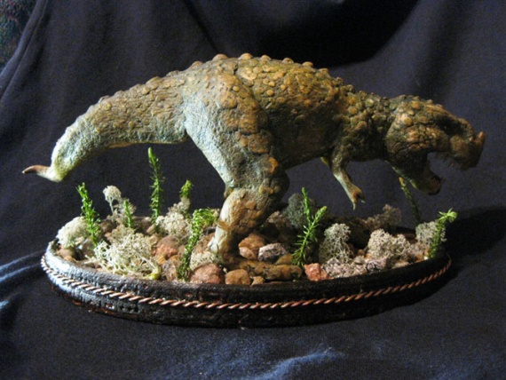 В лесу же был найден мох, который я тоже решил использовать. За недельку он подсох, и скорее всего долго не протянет. Ну, посмотрим. На крайняк придется реставрировать, но зато он очень вписался в композицию, имитируя доисторическую флору.