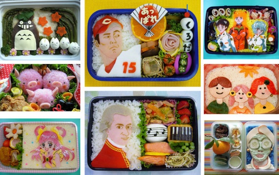 Особенный вид – это кярабэн, то есть арт-бэнто. В коробочке с обедом можно увидеть изображения людей и животных, персонажей мультфильмов, а также целые тематические сюжеты. В Японии даже проводят соревнования – кто лучше всего сервирует порционный обед.