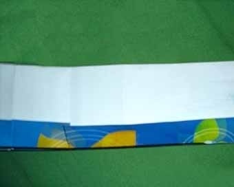 Вкладываем пластиковые карточки внутрь полоски бумаги и загибаем лишний край.