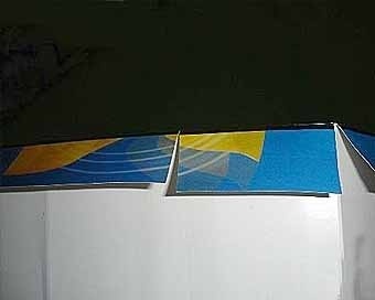 Склеиваем между собой соприкасающиеся грани бумажных полос и перпендикулярно стенкам сот загибаем подрезанный край бумаги.