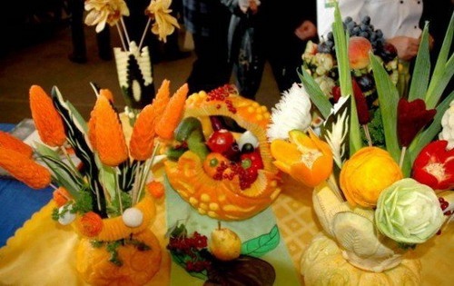 Очень красивые работы, сделаные человеком из овощей и фруктов.
