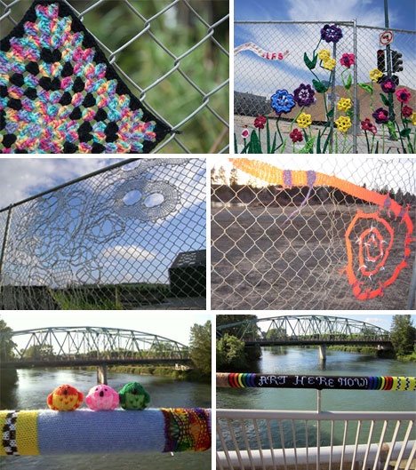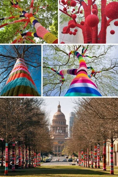 Но чаще всего, это сообщение просто «наслаждайтесь этим». Обычно пряжей покрывают скульптуры, столбы, транспорт, деревья, в общем все, что считают будет интересно увидеть.