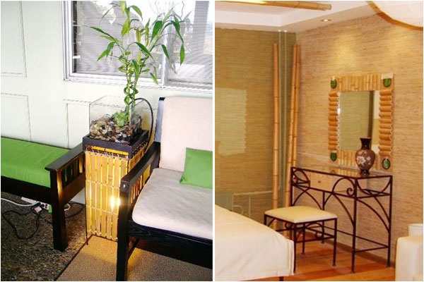 Выбор декора из бамбука невероятно широк. Это могут быть и ширмы, и мелочи на журнальном столике, и абажуры, и рамы для зеркал и картин, и даже цветочные вазоны для искусственных цветов. Все они придадут комнате очарование и тепло природы.