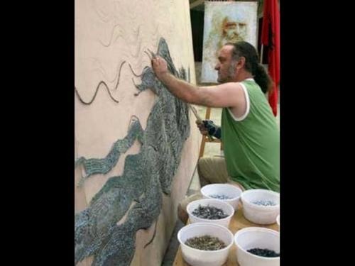 Из гвоздей и зубочисток делает свои картины этот художник. Смотрите.