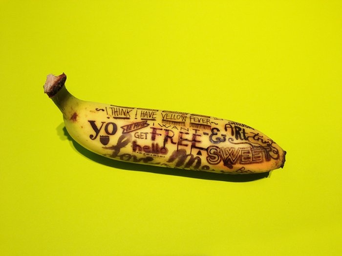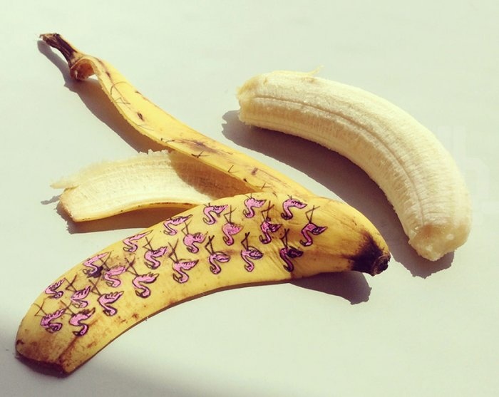 Марта Гросси (Marta Grossi) считает поверхность банана отличным «холстом». Она говорит: «Каждое утро я съедаю банан. Поэтому, у меня есть ровно одна ночь, чтобы создать на нем свой рисунок. А утром, я сфотографирую на свой iPhone результат работы и тут же его съем». Автора отнюдь не смущает, что эти граффити-бананы являются лишь временным искусством, ведь каждый результат запечатлен в виде фотографии. Именно эти снимки мы сейчас и посмотрим.