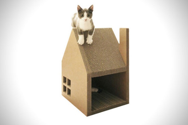 Этот домик для сна и игры был сформирован из 48-ми слоёв картона. Такая довольно прочная и недорогая конструкция украсит интерьер и позволит не беспокоиться об испорченном когтями и зубами имуществе.