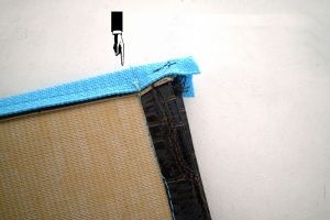Далее выворачиваем изделие на изнанку. Предварительно на края клеим бумажную ленту.
