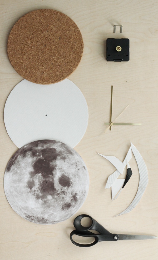 Сделать их не составит большого труда, могут возникнуть проблемы с поиском круглой подложки из пробкового дерева или фанеры, которая будет основой наших часов, их можно купить в строительных магазинах. Далее мы распечатываем фотографию (принты можно скачать в конце статьи) на принтере, вырезаем и наклеиваем на картон, который позже крепим на подложку. Просверливаем дырочку по центру для часового механизма, устанавливаем его и крепим стрелочки. Вуаля!