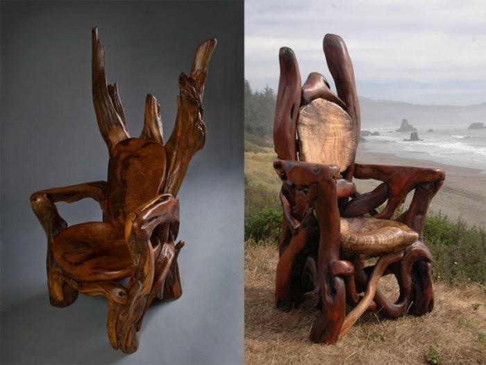 Используя только такие материалы как затонувшие коряги, корни, наросты на деревьях и найденную на природе древесину Джеффро Уитто создает удивительные произведения искусства и мебели.