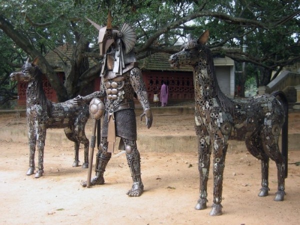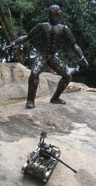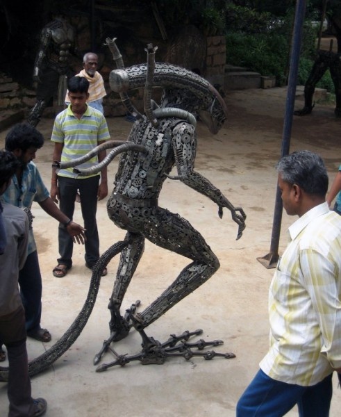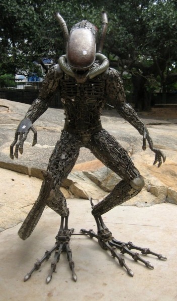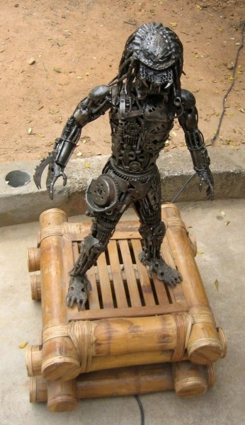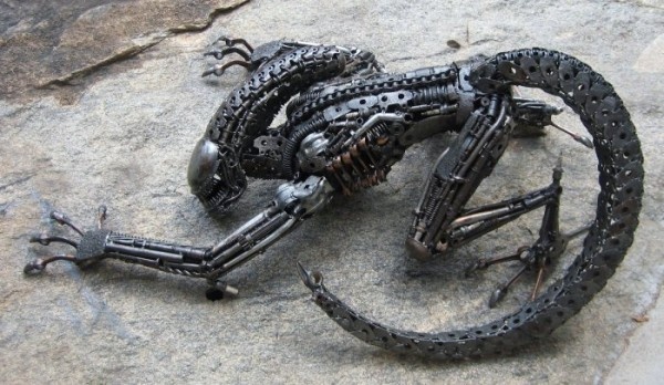 Фотографии красивых скульптур, выполненных мастером из деталей автомобилей.