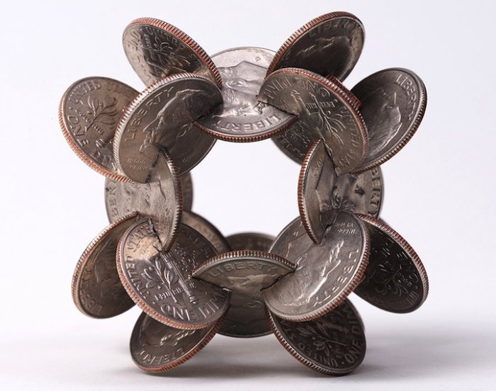 Он создает из монет скульптуры.