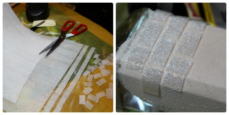 Для имитации кирпичиков идеально подходит полиэтиленовая подложка. За неимением оной, можно взять: обои виниловые, пробковую подложку, плотный картон или что-то еще, до использования чего я не додумалась.