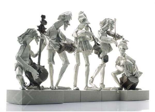 Одной из самых известных работ Жуазеля стала группа музыкантов. Особое очарование фигуркам придавали тщательно выписанные детали – нахмуренные брови и натруженные, изрезанные венами руки. У каждого музыканта был миниатюрный инструмент – скрипка, туба, саксофон или арфа; инструменты также были сделаны из бумаги.