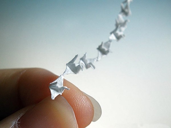 Студентка архитектурного факультета впервые начала экспериментировать с оригами, когда ей было всего 9 лет. Тогда для создания крошечных моделей она использовала обертки от конфет. С тех пор она продолжает делать все более маленькие модели, создавая цветы, самолеты и птиц в миниатюре.На создание таких шедевриков уходит около 20 минут, хотя ей приходится не раз перепроверять, чтобы все складки были правильные. «Первый раз для этого мне понадобилось около часа, — говорит она, — но затем я научилась делать модель за 20 минут. Время также зависит от настроения и от того, сколько я практиковалась с той или иной моделью, потому что каждая из них – уникальна».