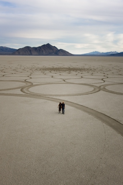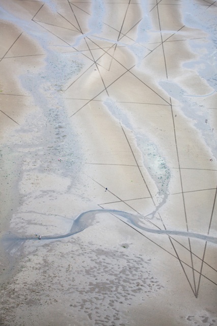 Этого необычного человека зовут Джим Деневан (Jim Denevan), он занимается тем, что рисует различные геометрические фигуры на песчаных пляжах.