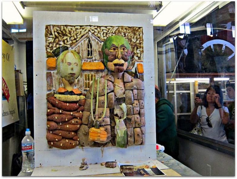 Вместо краски и холста были использованы овощи, фрукты, столовые приборы. Надо отметить, что результат просто впечатляет.