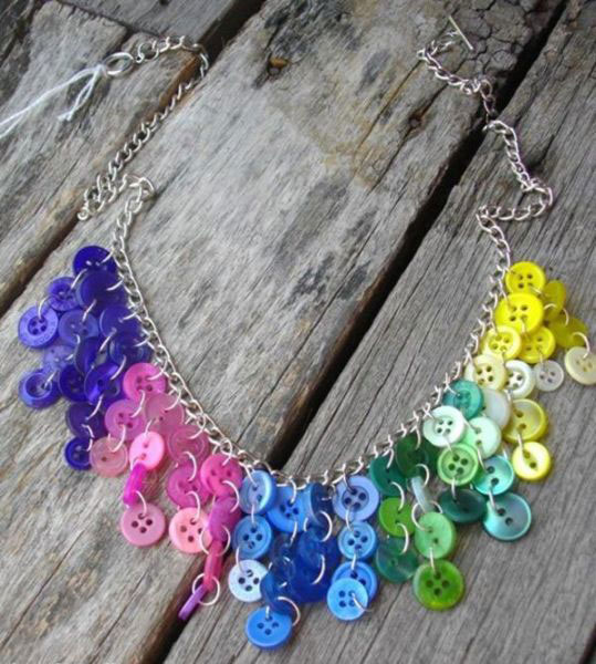 Колье из пуговиц тоже смотрится довольно эффектно. Главное – грамотно его соорудить и закрепить, иначе девушка рискует походить на Золушку, которая после полуночи потеряла свой сказочный наряд. Что касается нашей героини, то она может лишиться пары деталей на колье, что вряд ли украсит внешний вид модницы.