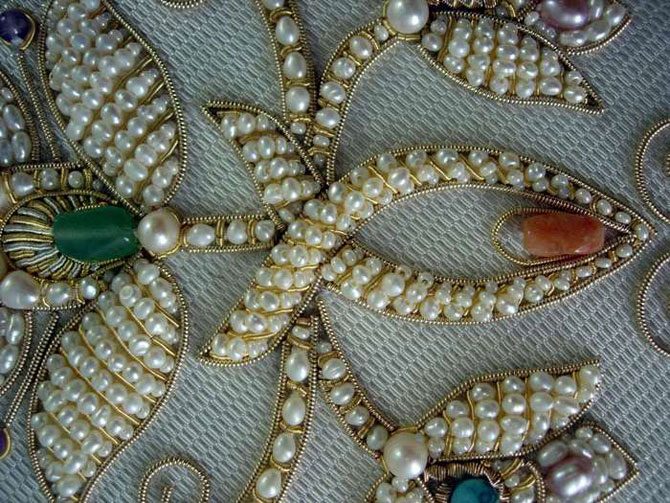 Шитьё и «низанье» жемчугом были очень распространены на Руси. При этом применялся как привозной («гурмышский» и «кафимский») жемчуг, так и более мелкий – свой, добываемый во многих северных реках (известно более 60 «жемчужных» рек).