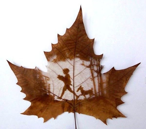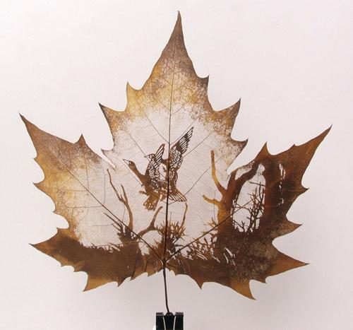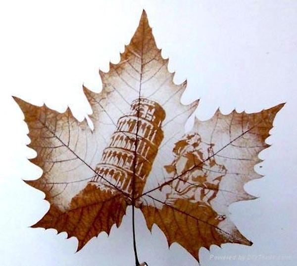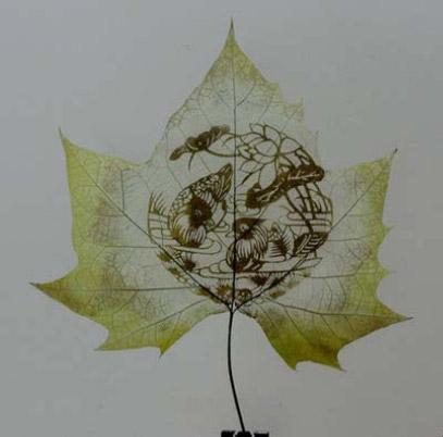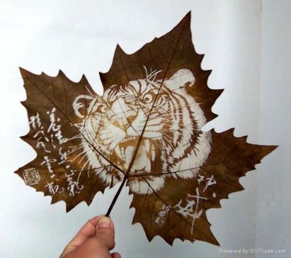 Работа по созданию такого изображения проходит в несколько этапов, листья тщательно отбирают и высушивают, затем их опускают в кипящую воду, чтобы сделать мягкими и убить бактерии, после этого лист снова очищают и начинают резьбу. Когда изображение готово, лист ещё раз высушивают, и он готов к доставке заказчику.