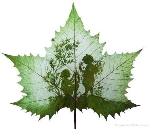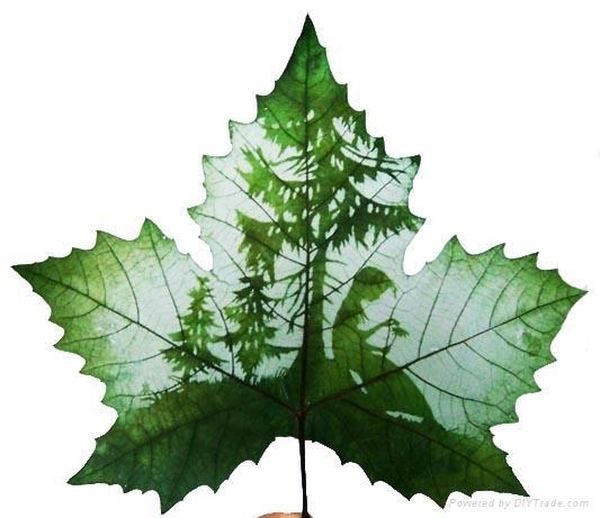 Работа мастеров по–настоящему ювелирная, листья нигде не прорезаны насквозь, при создании изображения срезается лишь часть поверхности листа, при этом остаётся тончайший, почти невидимый полупрозрачный слой.