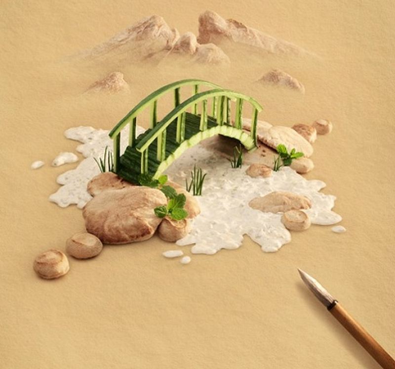 По сложности исполнения выкладывание пейзажей из еды ничем не отличается от написания картин маслом. Создание одного съедобного пейзажа занимает несколько дней. Сначала по эскизам подбираются продукты. Затем два-три дня уходит на построение пейзажа и фотографирование, при этом, чтобы «капризная» еда под светом сафитов не заветривалась и не портилась, каждая сцена фотографируется слоями. Еще несколько дней уходит на ретушь и совмещение всех слоев и элементов фотографии. В результате получается великоленая иллюзия.