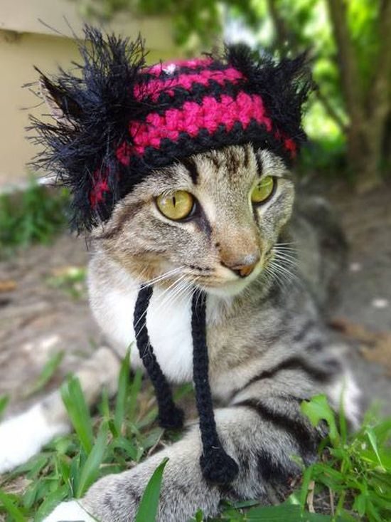 Обратив внимание на большой выбор вязаных шапочек для детей, Мередит решила, что нет никаких причин, почему ее любимые кошки не могут иметь такой же выбор головных уборов, как люди.