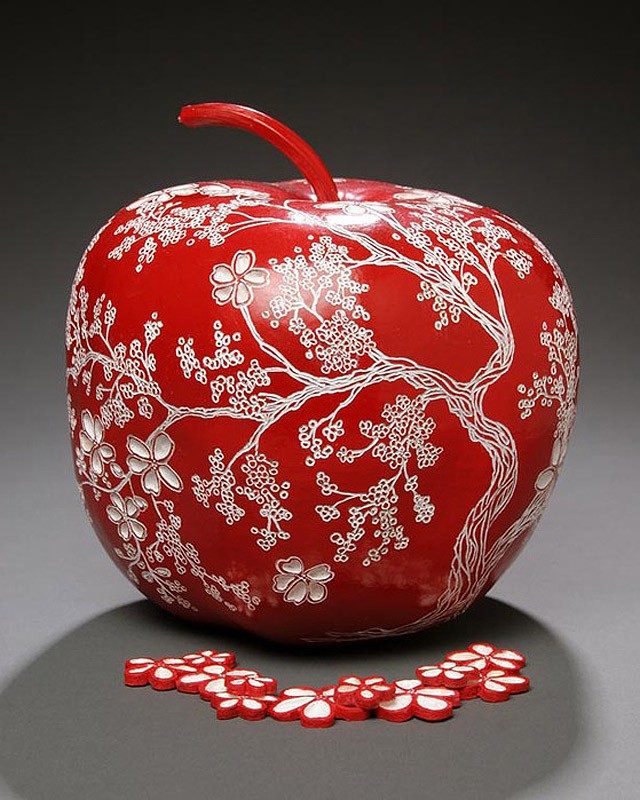 Мэрилин создает из тыквы удивительные креативные поделки. Она не раз участвовала в конкурсах и международных выставках и за свое творчество уже получила несколько наград. Вдохновляясь красотой природы, и черпая настроение окружающего нас мира, художница украшает свои тыквыразличными узорами и орнаментами.