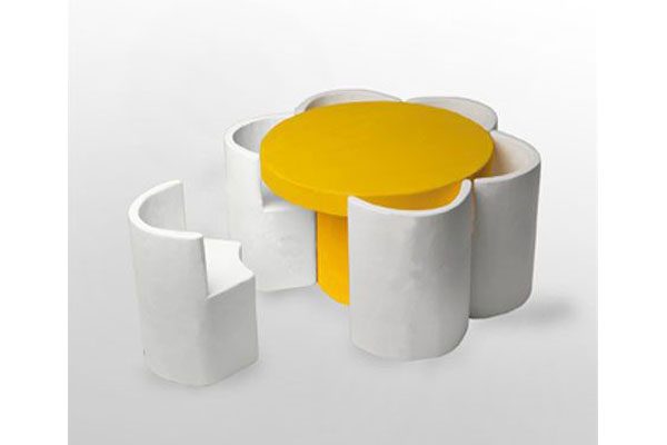 Слово “Bunga” означает «цветок». Фактически дизайнер предложил целый комплект мебели из стола и нескольких стульев, которые в сложенном состоянии напоминают огромный цветок. Круглый стол ‒ сердцевина, а стулья ‒ лепестки. Комплект придётся по нраву и детям, и взрослым.