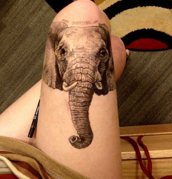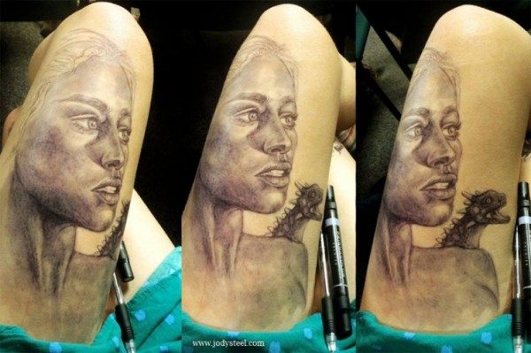 Ее первым масштабным творением было лицо главного героя сериала «Во все тяжкие», которого играл Уолтер Вайд. Теперь эта картина является одним из первых результатов на поиске Google «рисунки Уолтера Вайта». Джоди сожалеет только о том, что она не поместила свое имя в оригинал, и ее рисунок до сих пор считается анонимным. К слову, еще несколько ее рисунков попали в интернет, хотя не всегда с ее согласия. Джоди не профессиональный татуировщик, но она с недавних пор думает над тем, какой из своих рисунков на ноге сделать вечным. Слон, которого вы видите на фото, имеет все шансы на выигрыш, так как этот рисунок один из ее любимых.