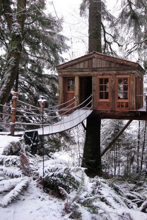 Таким экстравагантным образом жизни могли похвастаться разве что жители папуасского племени Караваи. Однако сегодня желание взобраться повыше не чуждо и цивилизованным людям, представителям нового поколения. Недавно неподалёку от Сиэтла открылся оригинальный отель«TreeHouse», номера в котором располагаются прямо на ветвях деревьев.