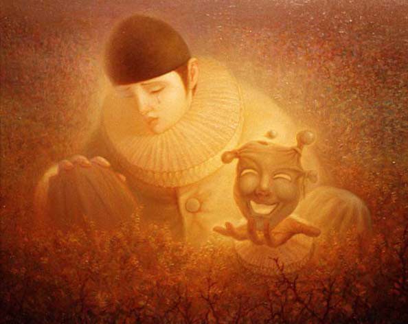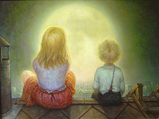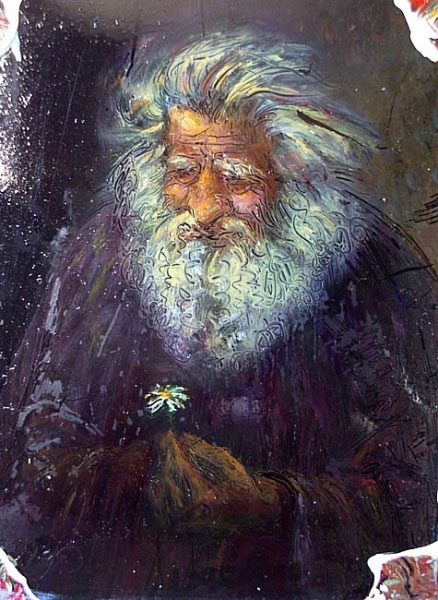 Его работы захватывают, передают ощущение гармонии и покоя. От них исходит свет, струящийся, неуловимый… Первая картина – из любимых. Девочка, своей непосредственной чистотой затмила мудреца… Он с волшебной шкатулкой, с умными книгами задумался… А олень в золотых лучах солнца? А его одна из самых известных картин – «Танцующий дворник»?