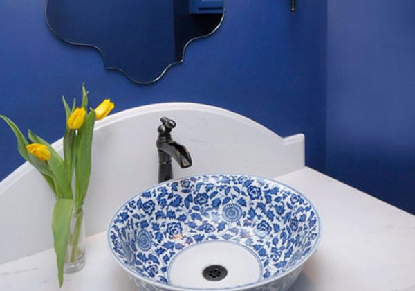 Нельзя говорить об Азии и не упомянуть о фарфоре. Как бы красиво ни выглядели стеклянные раковины, но они уходят в прошлое. Особенно когда есть возможность заменить их удивительными бело-голубыми фарфоровыми чашами. Если покрасить стены в ванной в похожий синий или белый тон, можно создать потрясающий гармоничный интерьер.