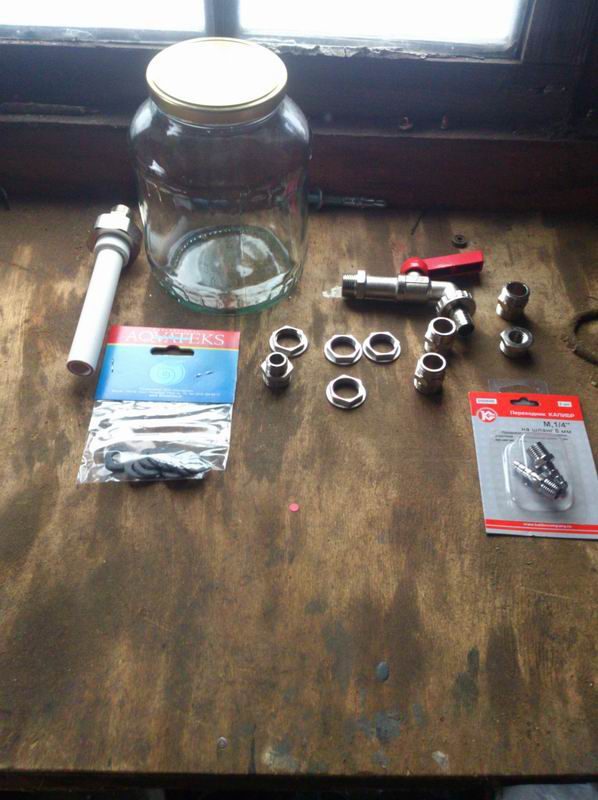 Кран, фитинги, банка для сухопарника, переходники и прокладки,