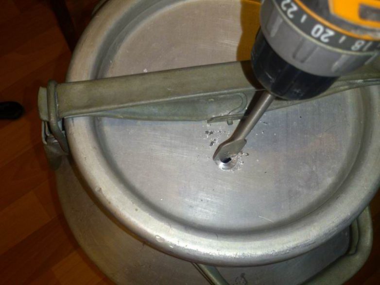 девственно чистый бидон портим дырой для подключения трубки идущей к сухопарнику.