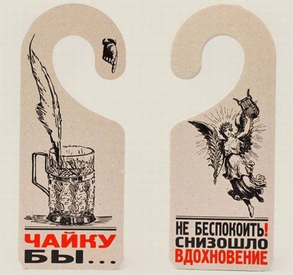 Во времена советского союза, были популярны таблички, которые вешались на дверную ручку, оповещая, как правило персонал гостиницы, о том что нужно делать, а чего нет.